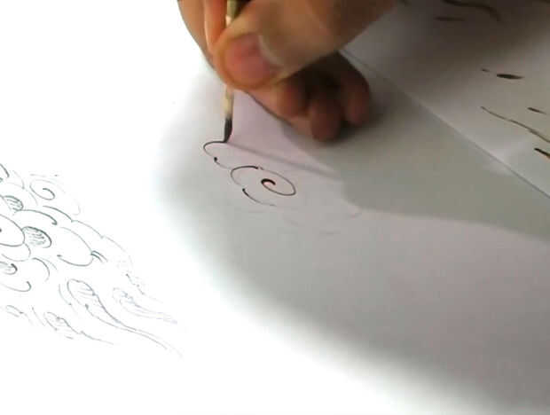 Uno de los ejercicios en el trabajo de pincel y la tinta que mencioné en el anterior artículo fue las formas círculo y espiral que pueden ayudarle ahora. Las prácticas más por cepillo de pelo, tienes mejor dibujar. (Figura 10)