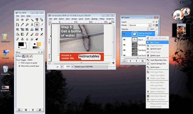 En GIMP, vas a tener que hacer clic derecho en la "capa pegada" y hacer una nueva capa.