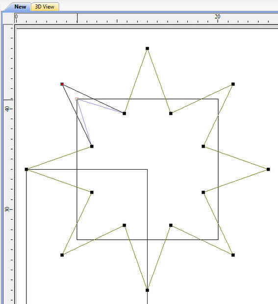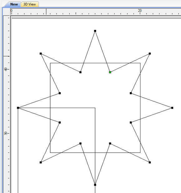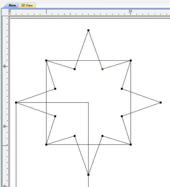- Haga clic en la estrella en el dibujo para seleccionarlo (ver imagen 2 que muestra los nodos de la estrella después de que fue seleccionado).
