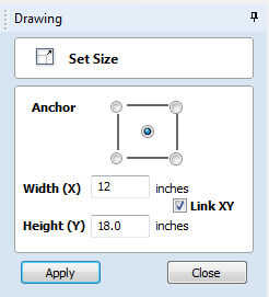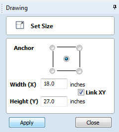 - Establecer el ancho (X) = 18 (VCarve pondrá "altura (Y)" puesto que "enlace XY" está activada).
