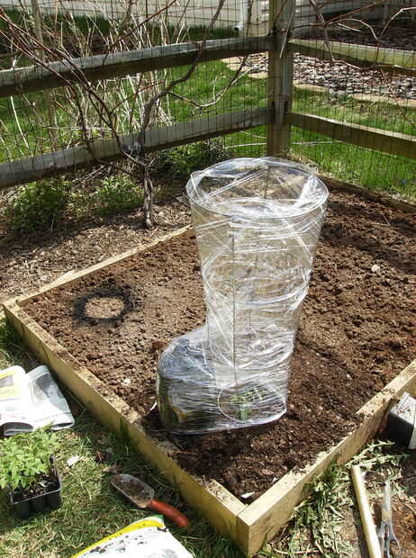 Este es un paso importante para asegurarse de la integridad de la jaula de casa caliente se mantiene intacta. Aviso que he dejado varias pulgadas de envoltura de plástico colgando de la parte superior de la jaula. La vuelta excesiva superior debe estar metida abajo en el interior de la jaula. Esto es necesario para asegurarse de que no sopla el viento brechas en jaula plástica.