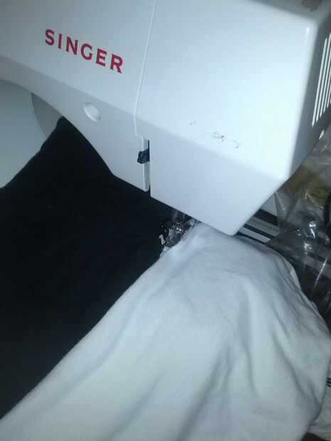Luego coser la tapa del tanque blanco de la falda negra por lo que parece un vestido. Después de que usted necesita comprar una cinta rosa que cualquier diseño desee (o cualquier cintas de colores que desee) si no tienes uno que se puede coser en el vestido.  Al llegar la cinta necesita coser bastante por lo que cubrirá la parte delantera de la línea de cosido (la línea que conecta a los blanco tapa del tanque y falda).