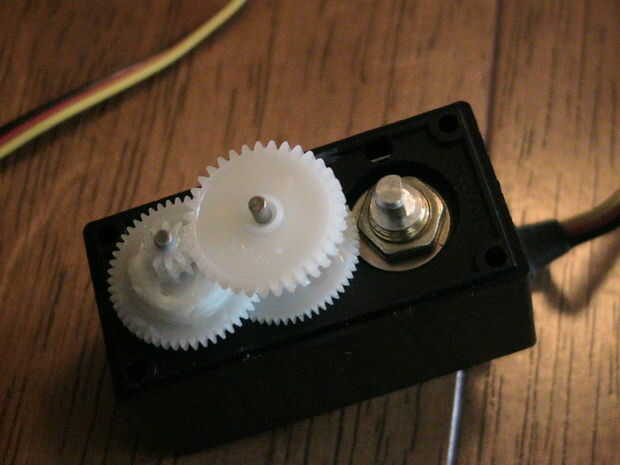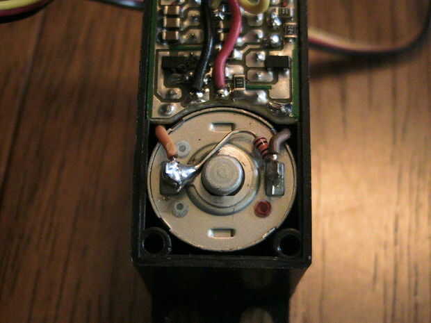 Hay dos maneras para invertir la rotación del servo: comprar un cable especial de conexión o modificar el cableado en el servo. Decidí modificar el cableado. Estas instrucciones se aplican para el servo Hitec HS 300 pero más servos son similares en construcción.