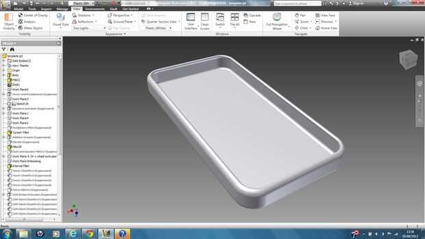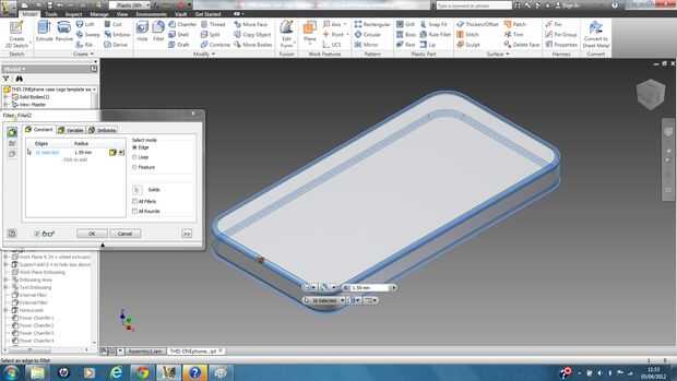 Concha su sólido hacia el exterior de un espesor de al menos 1,5 mm por lo que puede ser impreso por shapeways y decide eliminar el frente frente por lo que la pantalla de tu iPhone sería accesible como se muestra en la figura 3.