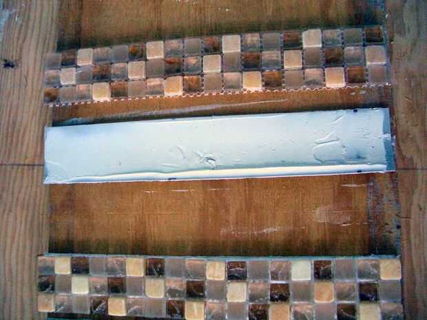 Si usted está tratando de lograr el efecto "3D" con el azulejo de cristal levantado sobre las losetas adyacentes... lo que tendrás que repetir el proceso con 2 capas de pan de ducha de línea, pegamento entre cada uno. Parece mucho trabajo pero no es... es la espera, que es la parte más difícil (como Tom Petty canta it... y lo de la derecha!)