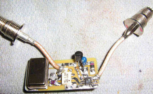 Conectores UHF fueron unidos al circuito de mini porque son perfectos para antenas sujetar.