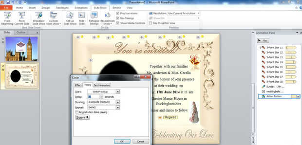 Siempre se cree que es una buena idea para añadir un botón de "Repetir" para cualquier Ecards. Para lograr lo mismo, añadir Insertar -> forma -> botón de acción.
