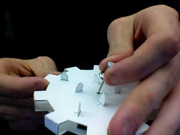 Repita los pasos y probarlo en su superficie de la pared o panel de corcho. Estos engranajes pueden apilar en uno a, así que si usted tiene un pin que es suficiente, trate de hacer multi dimensionales dispositivos mecánicos.