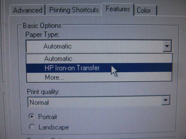 a continuación, deberás hacer, una vez haya encontrado la imagen que vas a usar, o han creado, es reflejar, por lo que demuestra para arriba en forma de espejo. Lo que esto significa, es que ha a practicamente a ser al revés. La razón de esto, es cuando la transferencia de la camiseta se pone encendido, debe ser al revés, para que se vean, regular, a los demás cuando se mira en él. Ahora que usted lo ha creado, poner el papel en la impresora, es tiempo para imprimirlo! Las fotos que he incluido que le enseñe a hacer que su impresora cuenta de qué tipo de papel se imprime, asegúrese de hacer esto! Están en orden.
