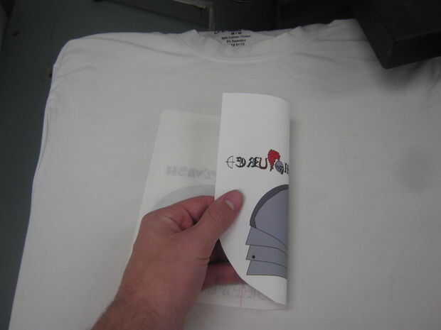 Último, es el tiempo para su diseño en la camiseta. Recuerde pelar apagado la parte posterior del papel antes de continuar. Asegúrese de que la prensa o plancha caliente antes de hacer este paso. Coloque la camisa en la superficie que vas a hierro en, o, si está usando una prensa, como soy, coloque la camisa en la mesa de prensa proporcionada. Colocar el diseño donde desea, le sugiero en el medio, porque los seres humanos son siempre el centro de todo y empiezan a planchar, o presionar. Mi prensa sólo tuvo uno, 60 segundos pulse tiempo en orden para el diseño a ser totalmente impreso en la camiseta. Una vez terminado, retire el pedazo de papel y te hará camisa!