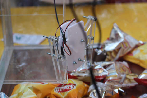 Este proyecto es simplemente, una máquina de candy grabber controlada con Arduino y 1Sheeld a través de juego cojín protector.