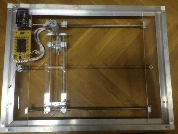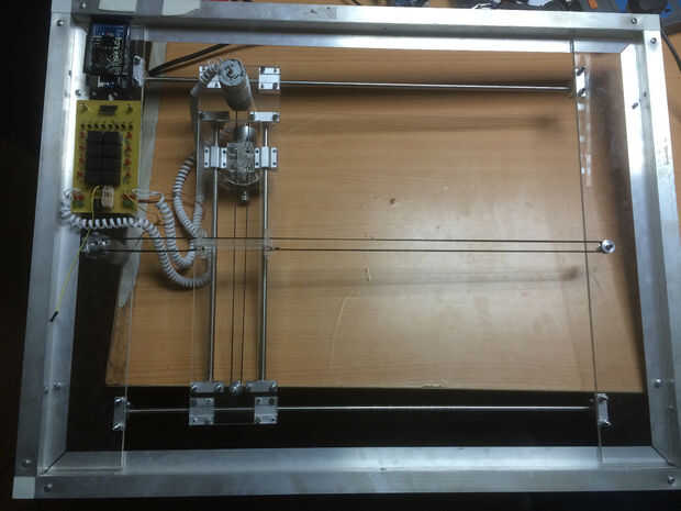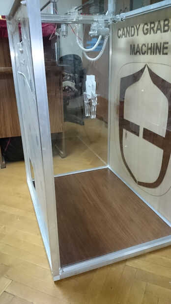 Mira el bastidor de la máquina, he usado barras de aluminio para crear el marco de la máquina, entonces utilicé hojas de acrílico transparentes para cubrir el frente y los lados de la máquina para permitir que la gente a ver lo que dentro de la máquina. Pero utilicé hojas de madera contrachapada para cubrir la parte posterior de la máquina y usé el cortador del laser para grabar el nombre del equipo y el logotipo de mi empresa.