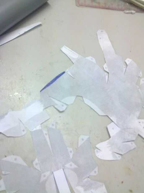 Ahora pegamento pone el patrón de que sólo en el papel. Recuerda esto: cuando usted corta, repuesto de un borde para que la pieza puede pegarse al papel principal. Este borde es importante porque si cortarla, el modelo se deshagan.