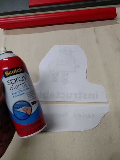 Paso 2: Entregar las piezas y rociar su spray de montaje en la parte posterior de las piezas. Siga las instrucciones en la lata para esto.