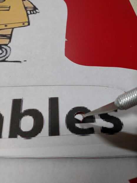Paso 1: Utilice su cuchillo exacto para empezar a cortar sus cartas. Asegúrese de que la hoja es afilada mientras que usted necesita cortar a través de su diseño y el vinilo por debajo de ella. Corte todas sus cartas/diseño Asegúrese de obtener todos las esquinas totalmente cortadas.