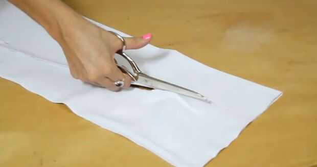 Marca en la tela la forma para hacer el patrón. Lo puedes hacer corto o largo como lo hago.