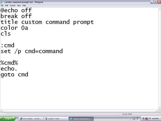 título personalizado el símbolo del sistema (o sólo título todo lo que quieras) color 0a