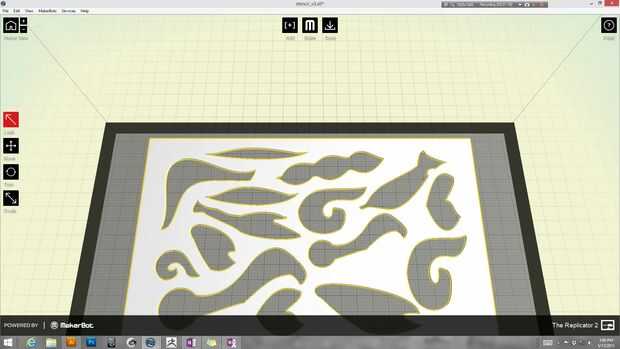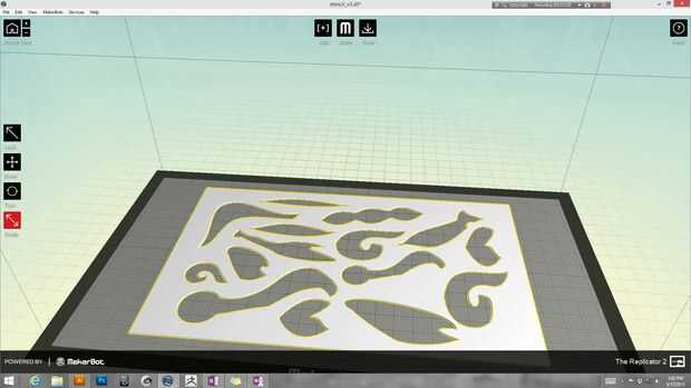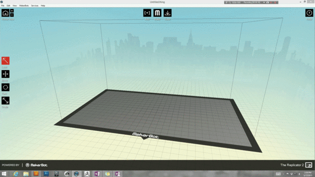 Abra su recién creado STL o OBJ en el software de las impresoras 3D. Usé Makerware. Configuración de la impresión: escalar, rotar y mover el modelo en su posición.