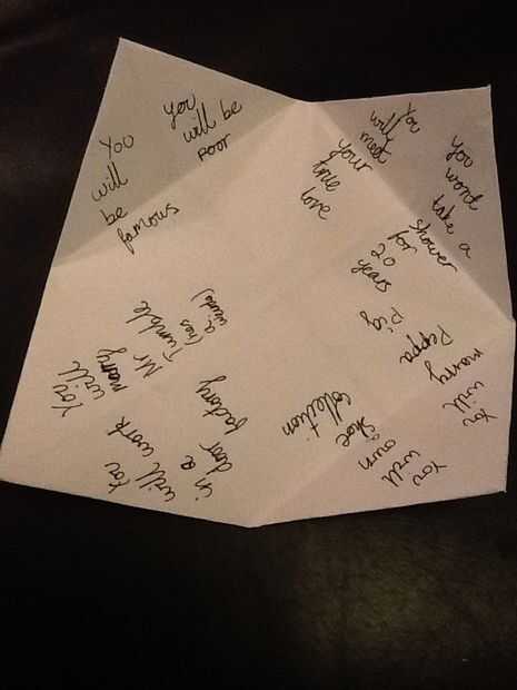 adivinación de papel es divertidos pequeños proyectos de origami para la predicción de alguien es el futuro.  Pueden ser para cosas tontas como bola mágica 8 de preguntas respondería.  El exterior tiene un color o número.  Alguien toma el color de nú