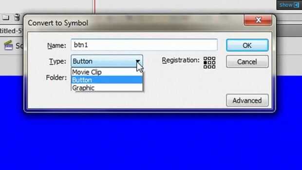 Selecciona la primera imagen y presione la tecla F8 en el teclado. Cambiar el nombre a "btn1," cambiar el tipo "botón" y haga clic en Aceptar. En el panel Propiedades, cambie el nombre de instancia a "button1". Seleccione la imagen siguiente en el menú y repita el proceso, nombrándolo "btn2" y "button2". Continuar con el proceso para cada elemento de menú.