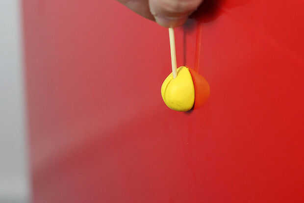 Empiece por conseguir un palillo cubierto con agua y jabón y empuje, mientras que tuerce, en la base de su corte.
