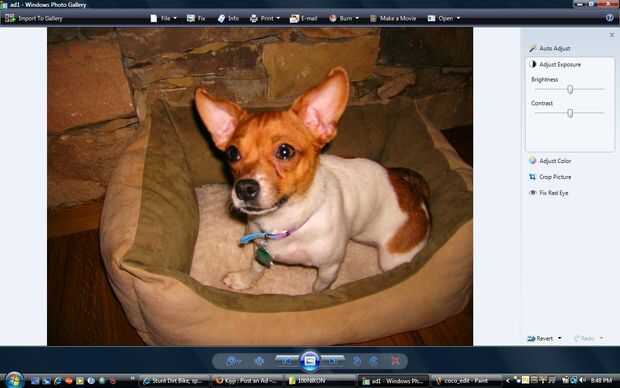 La segunda parte se subir las fotos al ordenador y editarlas. Tengo Windows Vista y utiliza el poco editor de fotos Windows que vino con ella (una de las pocas cosas que me gusta de Vista: P)