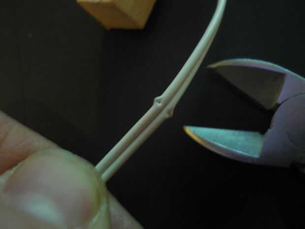 Cortar con cortadores de alambre, cada extremo del alambre plástico pero no corte el cable interior.