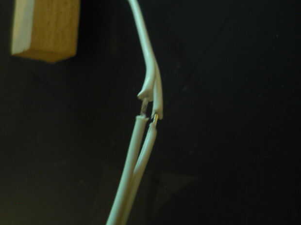 Con sus uñas, (si tienes) forzar el cable aparte, empujando el alambre en direcciones opuestas, esto debe dividir el cable aparte.