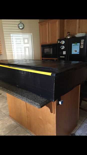 ahora quiere añadir un extra de dos capas de cartón en la parte inferior del barco y cubrirla con una capa de cinta adhesiva.