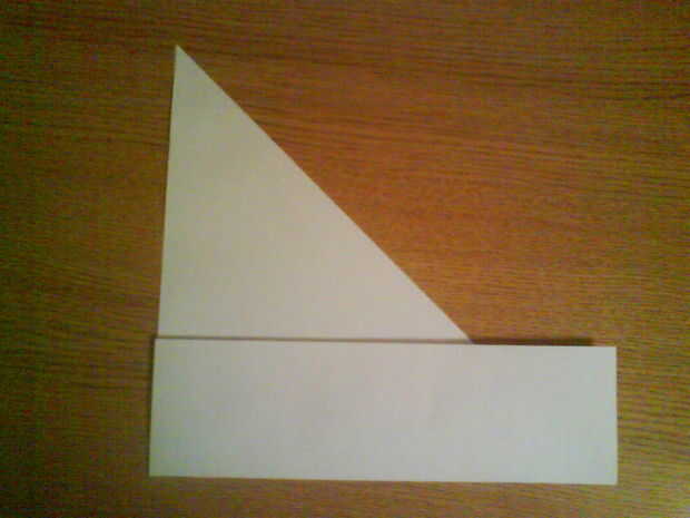A continuación, si usted tiene algunas tijeras de mano, entonces todo lo que necesitas hacer es simplemente cortar el rectángulo de la parte inferior para que se queden con una plaza después de que el triángulo derecho está desplegado.