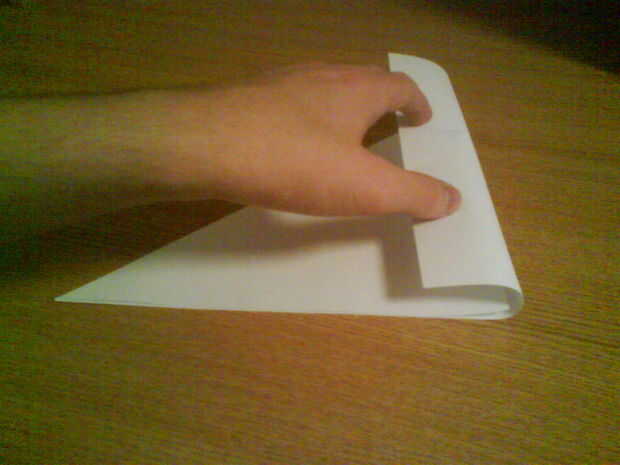 Si no son tan afortunados y no tienen algunas tijeras poner alrededor, entonces usted necesita doblar el rectángulo de abajo para arriba por lo que crea un pliegue. Continuación, debe humedecer el pliegue recién creado y arrancar el rectángulo inferior entonces para que se queden con un pedazo cuadrado de papel que se dobla diagonalmente por la mitad.