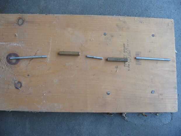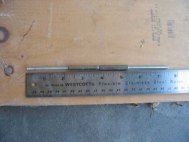 Luego cortar un trozo de 4 cm fuera del perno que 3. Pase todas las piezas usando las tuercas de acoplamiento, con la orden de largo, cortas, largo.