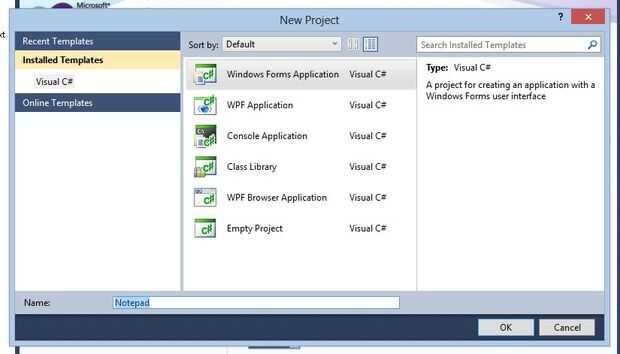 Abierto VS 2010 etc.... y luego crear un nuevo proyecto de visual c# (aplicación de windows forms). Su proyecto, aquí yo estoy nombrando a Bloc de notas pero lo que sea algo más fresco.
