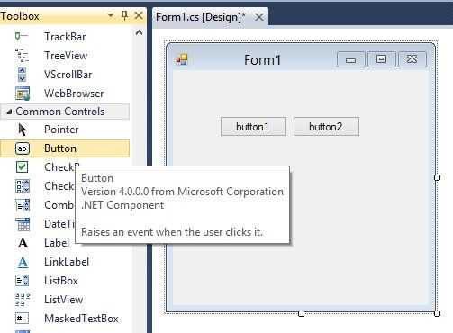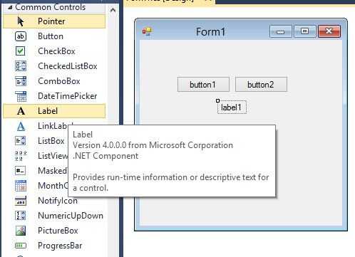 La caja de herramientas de búsqueda desplazándose y encontrar herramientas llamados botón, etiqueta, cuadro de texto.