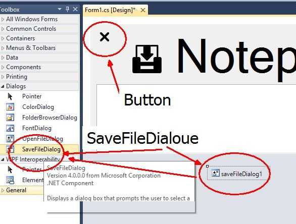 Ahora voy a añadir un "SaveFileDialogue" "FontDialgue" y un botón más.