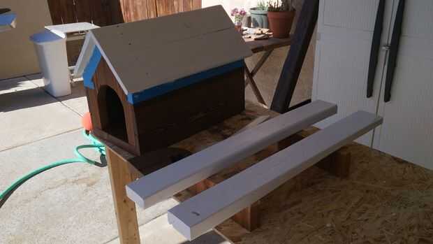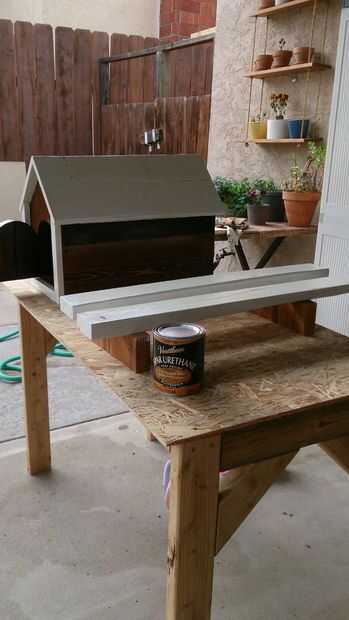 Arena y mancha la madera para techo. Uso (4) piezas de 1 x 6 para el techo. Decidí cambiar el color del techo por lo que hice al final. También quería pintar el 2 x 4, así lo hice así.