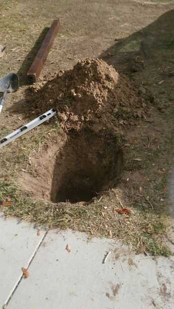 Cavó un agujero de 2 pies de profundidad porque no quiero usar concreto. Usé un nivel para hacer el poste derecho. Compacta la suciedad abajo para que el post no se moverían cuando agregué en el buzón.