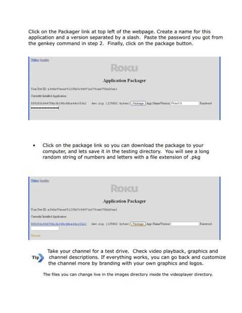 Haga clic en el enlace de empaquetador en la parte superior izquierda de la Página Web. Crear un nombre para esta aplicación y una versión separada por una barra. Pegar la contraseña que tienes el comando genkey en el paso 2. Por último, haga clic en el botón de paquete.