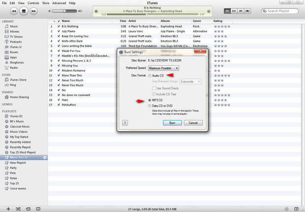 , A continuación, presentará con una nueva ventana que te permitirá personalizar las opciones de grabación. Puedes elegir entre Audio CD y CD MP3. Este último le permitirá añadir más pistas de música a CD/DVD, usted tiene que asegurarse, que su coche reproductor de CD de hecho leer archivos. mp3 (y de hecho si se quema en un DVD – reproductor Lee DVDs así).