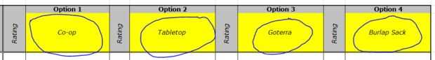 Lista de lo que actualmente se utiliza para resolver la identificación problema así como lo que se utiliza para salve problemas similares.  Identificar tantos productos/sistemas de la competencia y en las columnas de opciones de la lista.
