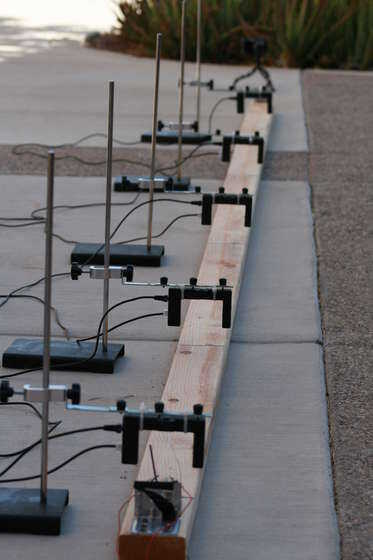 Para la pista, es mejor utilizar un largo tablón de madera como se muestra en la imagen. Coloque los soportes L dos en cada uno de los tracks y taladro en su lugar. 2 acero o alambres de aluminio de calibre 12, deberá adjuntarlos a cada extremos de la pista, paralela entre sí. Asegure el cable y ajuste los cables por los agujeros de tubo/de la paja de pluma que se unen a su coche. Asegúrese de que el alambre es firme y apretado para que rodar