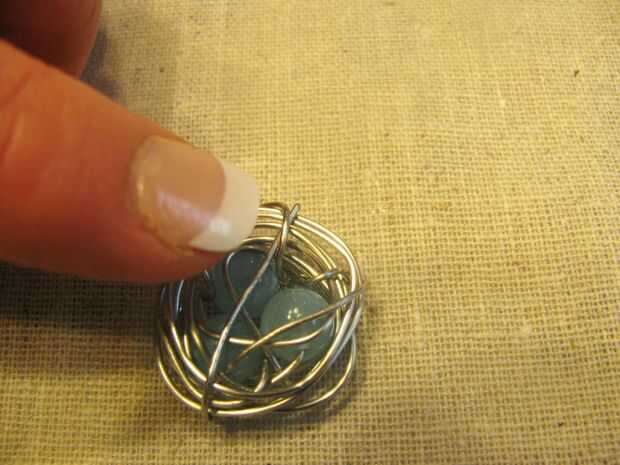 Una vez que tenga la forma general que desee para su nido puedes empezar a tejer adentro y hacia fuera para dar el nido algunos firmeza y forma.