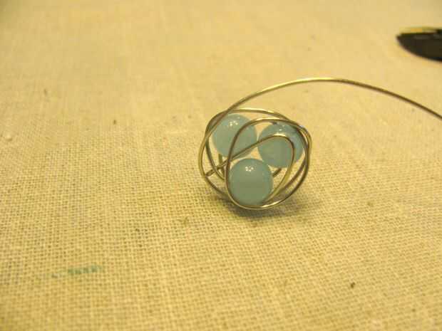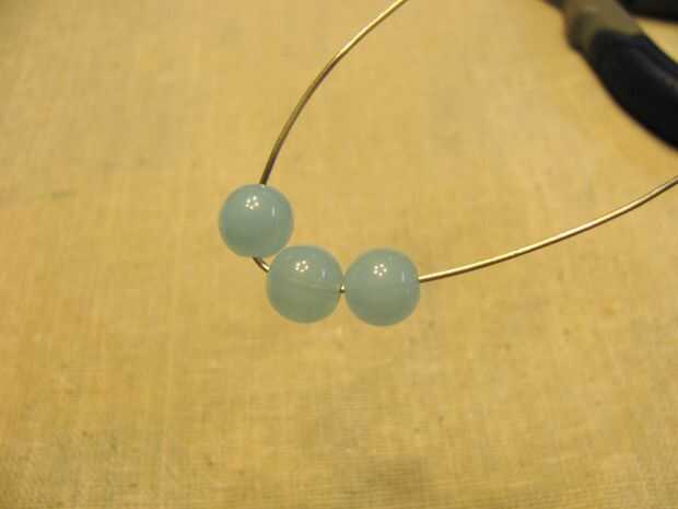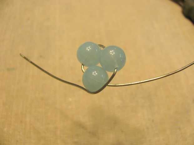 Doblar el alambre y unir los granos en un montón. Al usar 3 granos generalmente se verá como un triángulo.