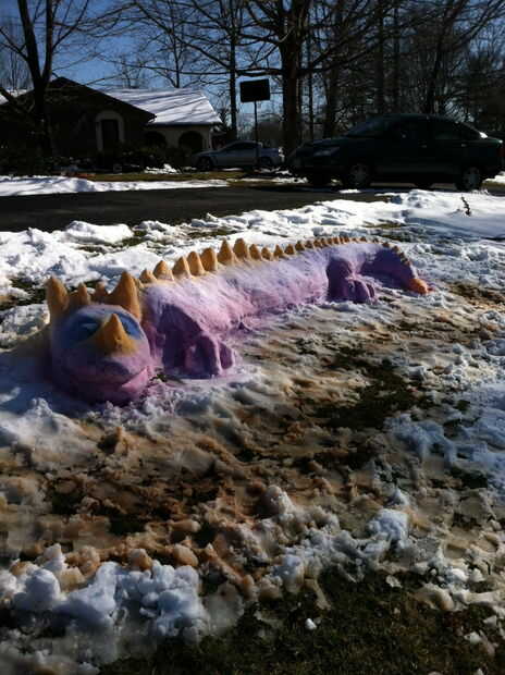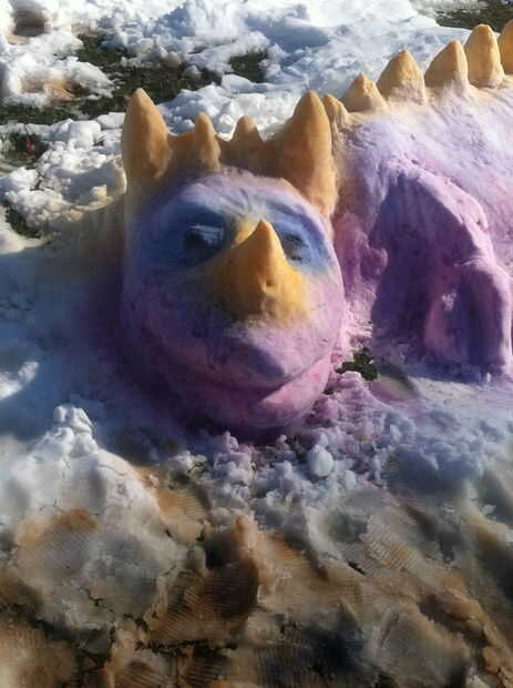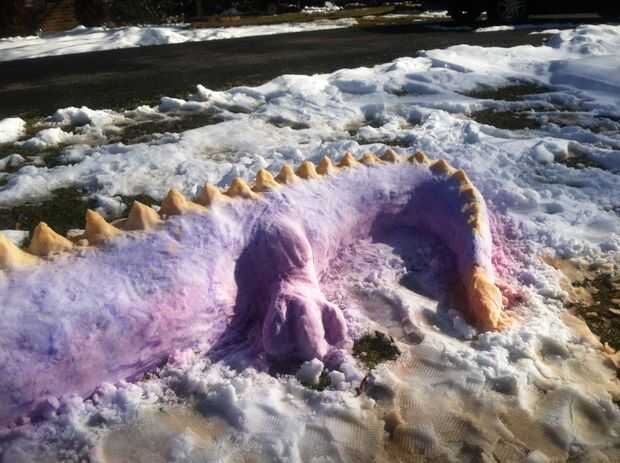 Aplicar color a la nieve es algo nuevo que al azar ideado y probado el año pasado. Hice una tortuga de nieve y poner colorante en un frasco y había diluido con agua. Roció la tortuga y el color celebrada así que sabía que la próxima vez que nevó iba a hacer algo más locos con ella!
