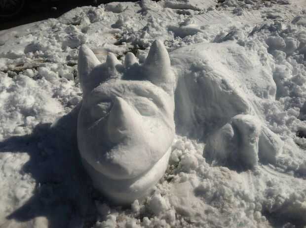 Yo sólo seguí viruta en la nieve hasta que conseguí la forma general que quería por la cabeza. Una vez que hice realmente utilicé mis guantes para tallar en la nieve y quitarle pedazos para crear zócalos del ojo y una boca. Puede ser más fácil encontrar algún tipo de herramientas para ayudarle a tallar como fue duro con los guantes, pero yo prefiero solo con mis manos. Entonces realmente deberás añadir nieve a creado cuernos y los ojos. Tomé puñados de nieve para los cuernos etc. y tipo de había esculpido en mis manos antes que los coloca en la cabeza. Después de haber terminado la apariencia que desea, luego pasar a los brazos y el cuerpo!