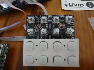Paso 6: encontrar las cabeceras: (botones / EncRows1/3), (matriz de LED) y Pot1-8. Introduzca 10 pin pin encabezados en la parte inferior del tablero.