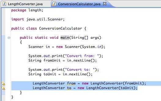 LengthConverter necesarios para realizar la conversión de la unidad. El primer objeto se encargará de la conversión entre las unidades "de" y metros. El segundo objeto se encargará de la conversión entre metros y las unidades de "a". Vamos a nombre del primer objeto "