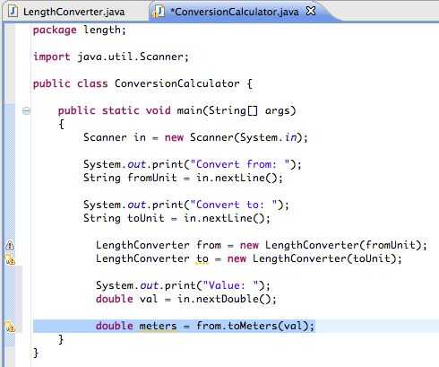 toMeters() . Asigne el valor devuelto (que ahora es en metros) a una variable