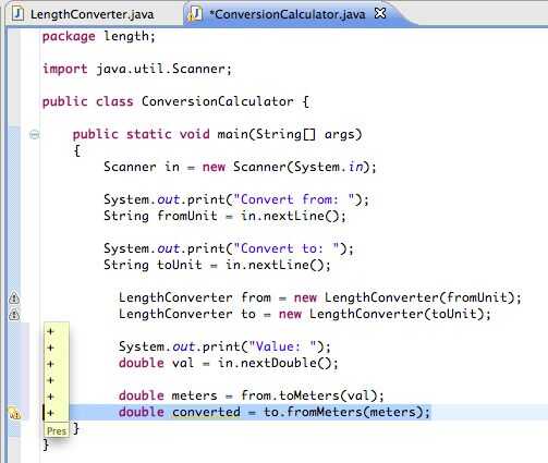 fromMeters() . Asigne el valor devuelto (que ahora está en las unidades de salida deseado) a una variable