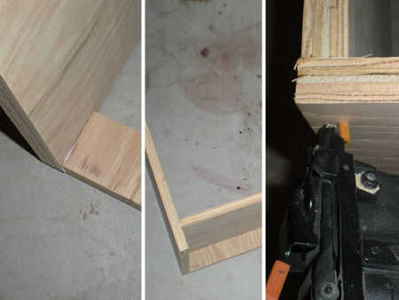 Fije a la parte inferior trasera de los lados. Luego fije el estante inferior en la parte superior y utilizar a otro separador para medir la misma altura de la frente y pegamento/el estante inferior en lugar del clavo.